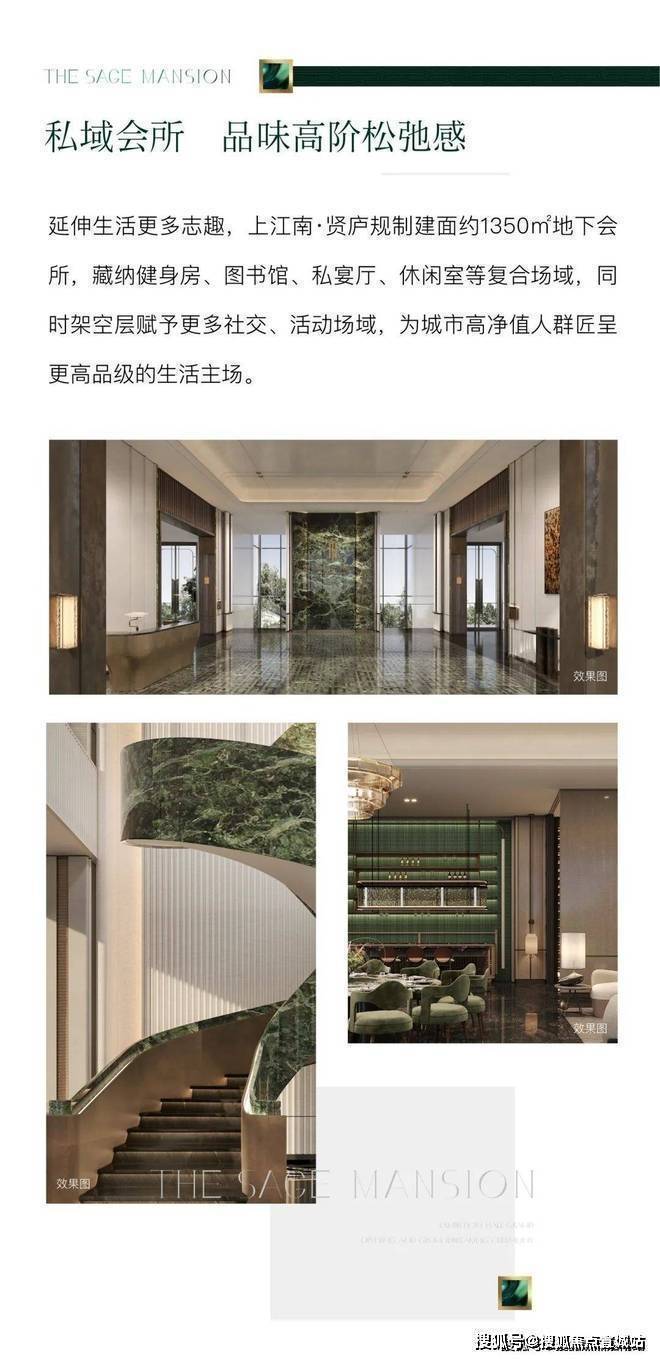 上江南贤庐售楼处营销中心:400-8828-814上江南贤庐售楼处电话/地址☎:400-882-8814(开发商热线)近1300㎡地下奢享空间,借鉴“九潮纳客”地下会所体系,融合奢石水景铺贴工艺,匠心打造奉贤首个社区私宴厅、高端健身房、雅致红酒咖啡吧、室内高尔夫、棋牌室及景观庭院。