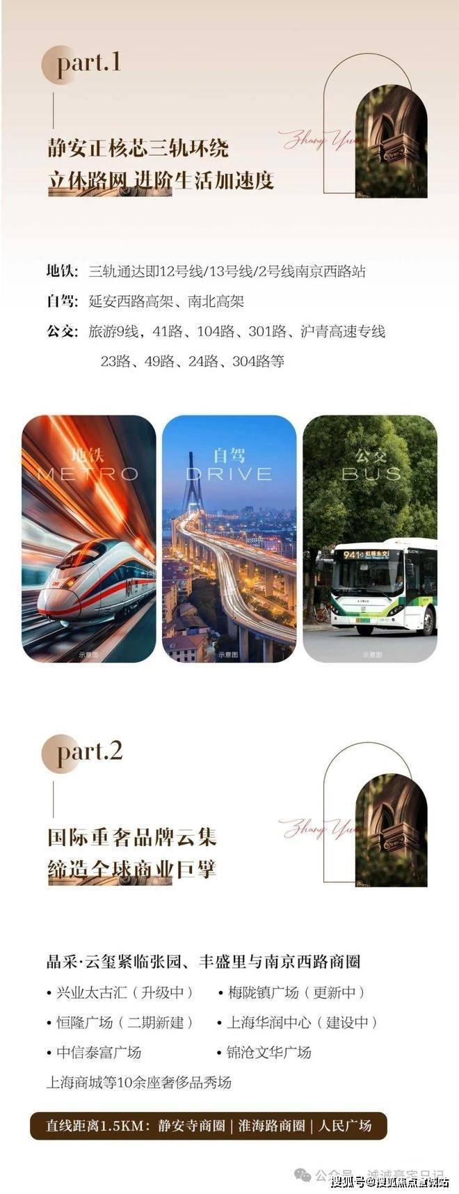 周边交通极为便捷,✅✅晶采·云玺售楼处电话:400/8862/334✅✅距地铁2/12/13号线南京西路站仅约500米,三轨交汇可快速通达全城。且临近南北高架与延安高架,自驾出行也十分顺畅,10分钟可达虹桥枢纽,12分钟就能衔接陆家嘴,无论是公共交通还是自驾都毫无压力。