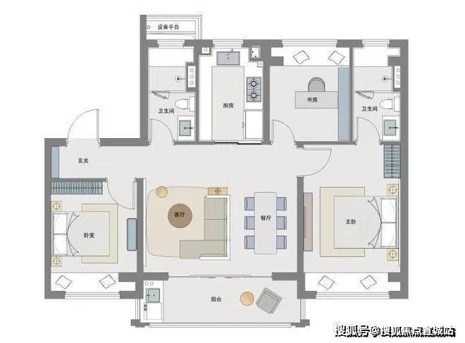 1、建面约92㎡做到3房2厅2卫,控制总价的同时将功能性做到了更大化
