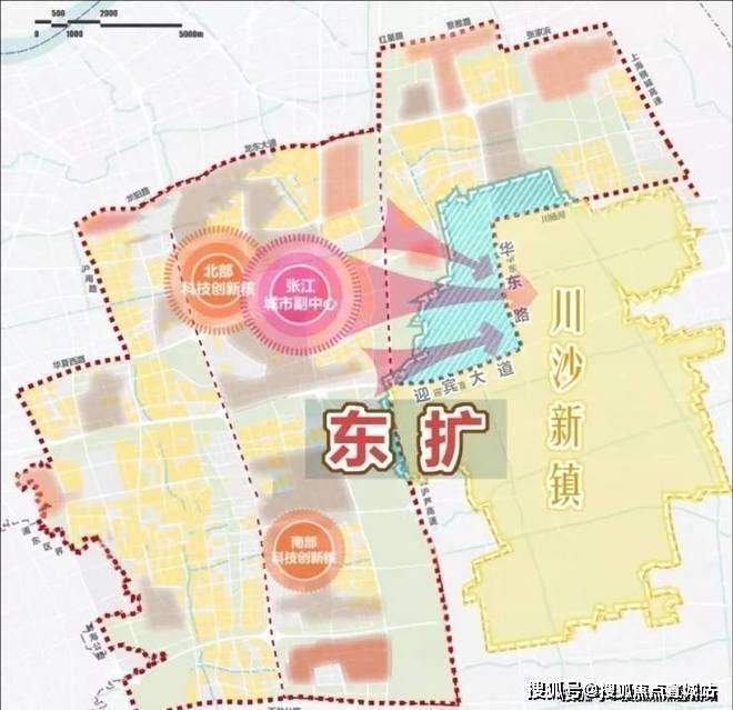 “川沙2035整体规划”中,川沙发展目标为:“形成以国际交往、旅游度假、历史文化及生态休闲为主导的浦东中部地区活力高地。”这恰好川沙与张江科学城在向东拓、国际旅游度假区在向东扩、东方枢纽在建三大动作遥相呼应。