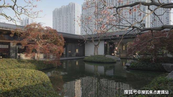 保利姑苏瑧悦取法苏州园林的廊桥框景线条美学,演绎为框体线条造型和简洁舒展的立面肌理。在地取材,运用质朴拙雅的御窑金砖,提取粉墙黛瓦的江南之色,定制兼具东方韵味和现代质感的蟒水纹。