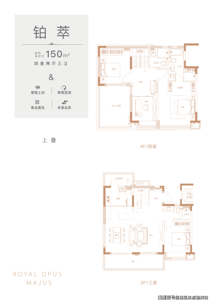 上叠:118(3室2厅3卫),150(4室2厅3卫),200(4室2厅4卫)