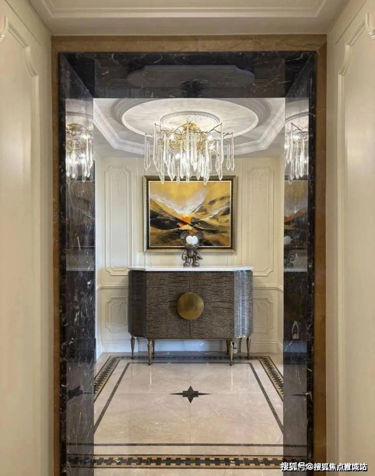 电梯快速直升云端,进入美宅之后,玄关处颇有artdeco装饰风格的复古气息扑面而来.