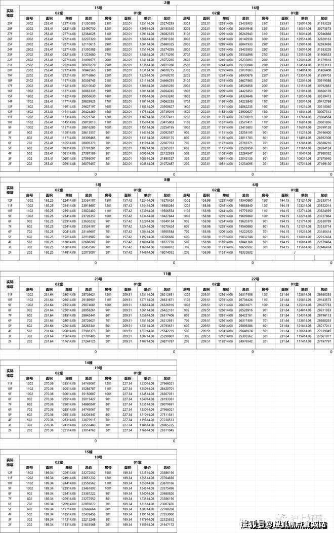附一房一价表:
