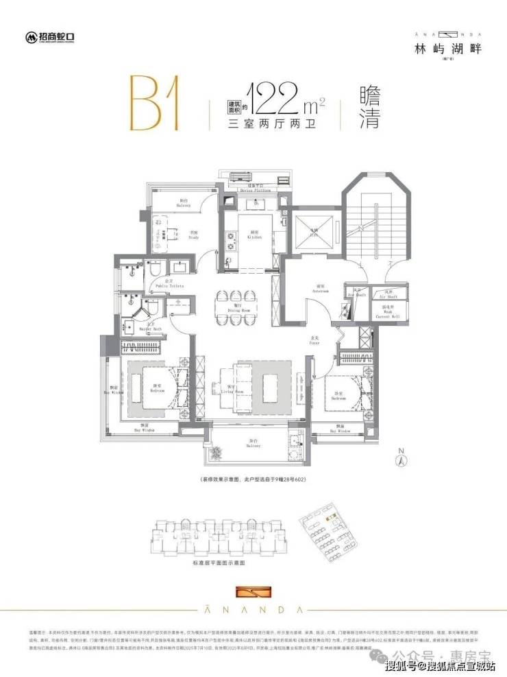 该户型分布在6号楼、9号楼、11号楼以及13号楼,其中9号楼位置最佳,南向楼间距约46米,下沉式庭院景观一览无余,下楼即达会所空间!