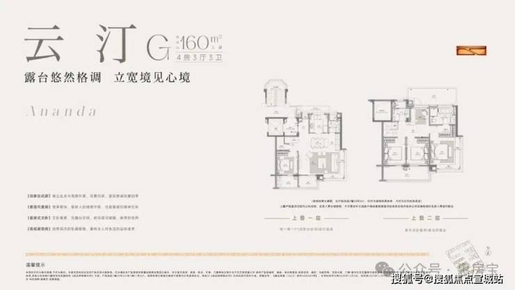 建面约160㎡上叠预计使用率最高约145%、约8.5m横厅双阳台、南北通透主卧套房。