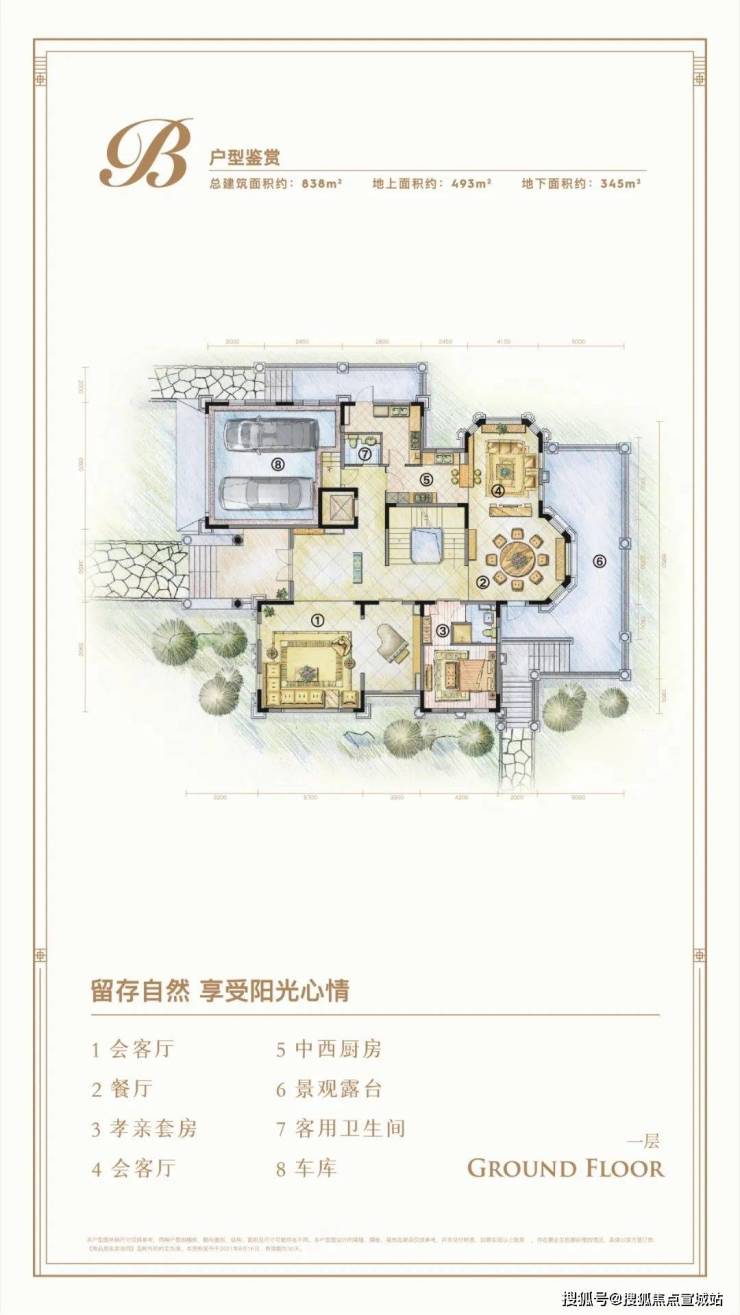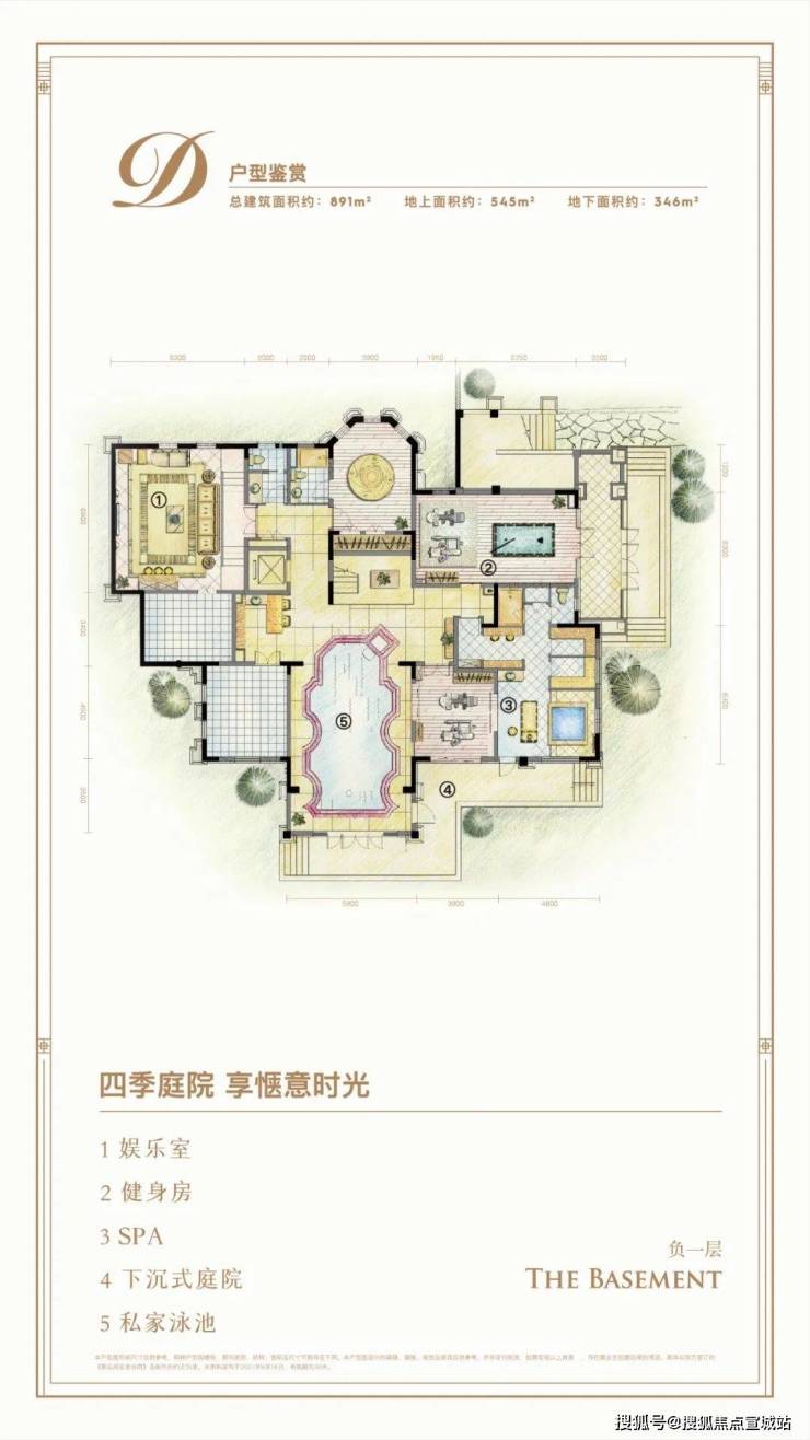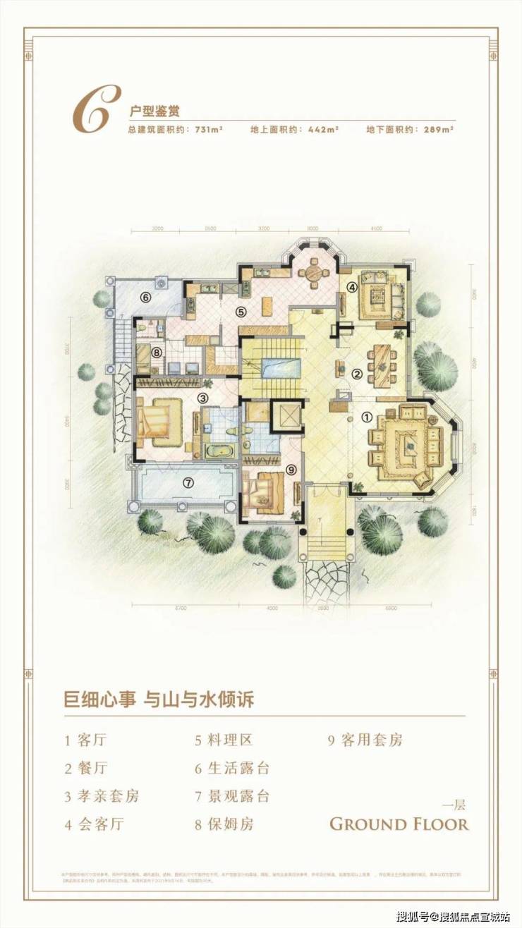 户型含5-8室,地下室层高5-7米,可改造泳池/影院。