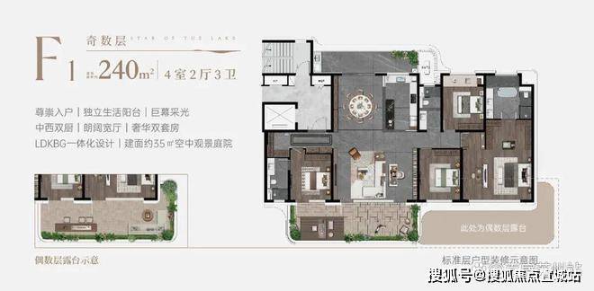 其中奇数层户型的空中庭院连接客厅,可融合露营、茶艺、儿童游乐等多元功能;偶数层户型的空中庭院连接卧室,可打造阳光书房、私属咖啡馆、瑜伽健身区等,真正实现"把自然搬回家"的居住理想。