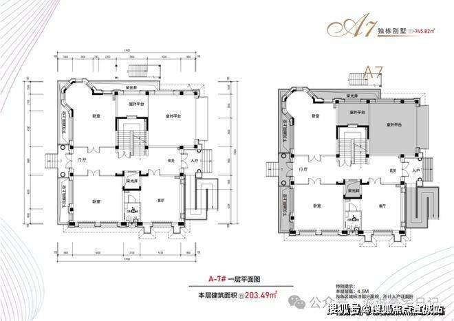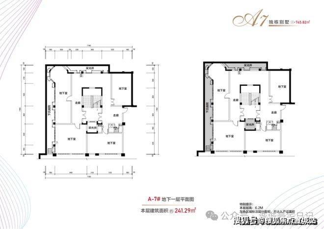 布局:地上三层(4.5米层高)+地下一层(6.2米层高)+900㎡花园