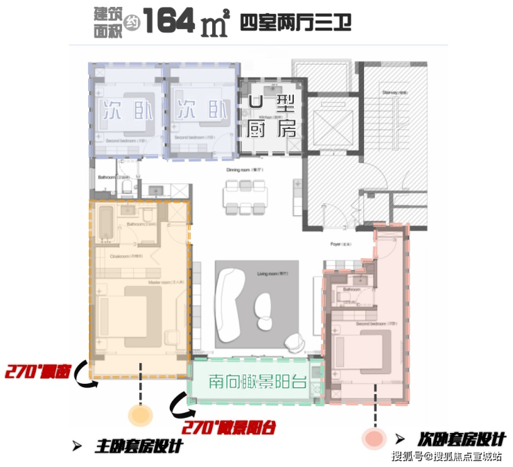 户型面积:建面约164㎡、189㎡和239㎡,均为四房两厅三卫