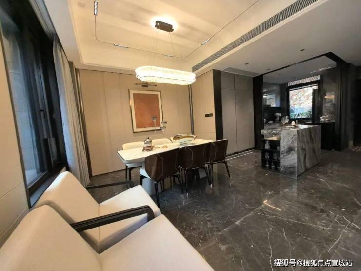 一层是会客区,大平墅的空间感,大横厅设计,客餐厅相对独立,将生活的奢度打开!