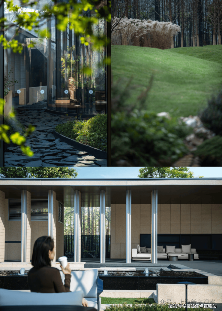 不同于传统示范区,蜿蜒曲折的约6万方公园是四季隐秀的归家前厅。社区前场是类高奢酒店设计,约10米高的「精神之门」矗立,仪式感扑面而来。