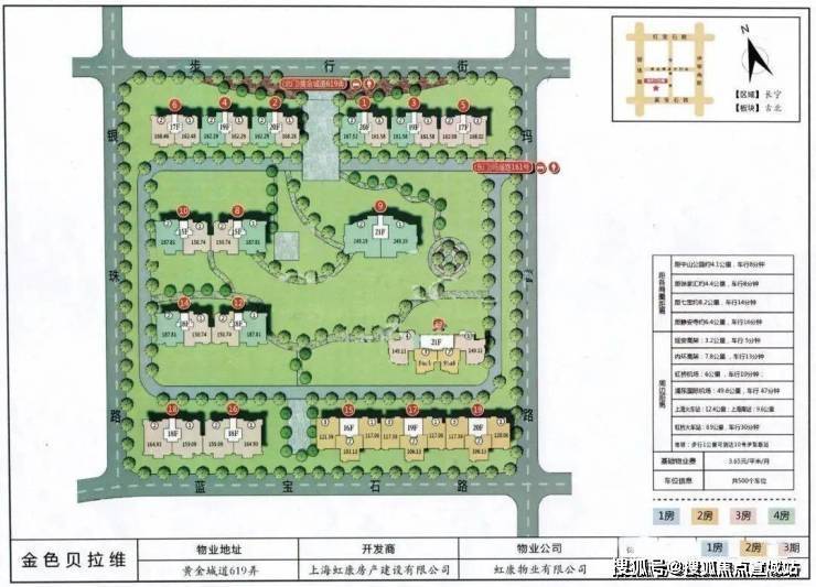 项目名称金色贝拉维区域板块·长宁古北板块开发商:上海虹康房产建设有限公司绿化率·约40%车位:数量647个机械车位,车位配比1:1容积率:2.71物业公司:上海虹康物业管理有限公司均价:11.5万总价:1118-2973万交付时间:现房楼栋数·17栋物业类型:住宅建筑类型·高层