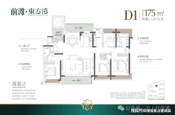 如果有进阶改善置业需求的客户,可以选择建面约140/175㎡4房2厅3卫!