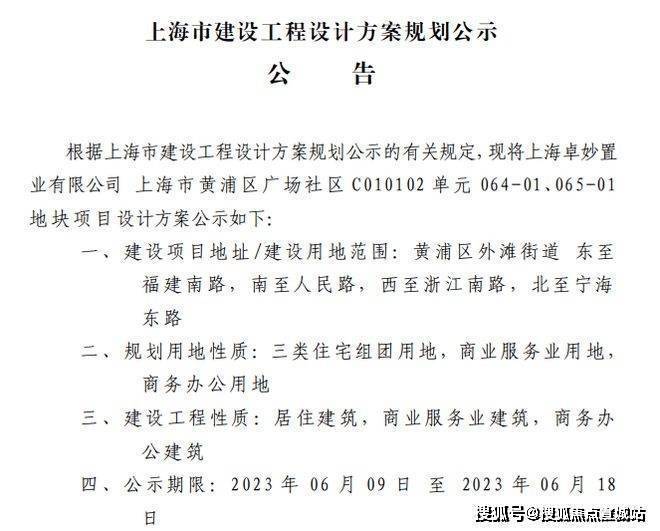 上海嘉里金陵华庭售楼处电话☎:400--8862-334(预约看房热线)其实早在去年6月9日,上海市资源与规划管理局就公布了黄浦区广场社区C010102单元064-01、065-01地块项目建设工程设计方案;