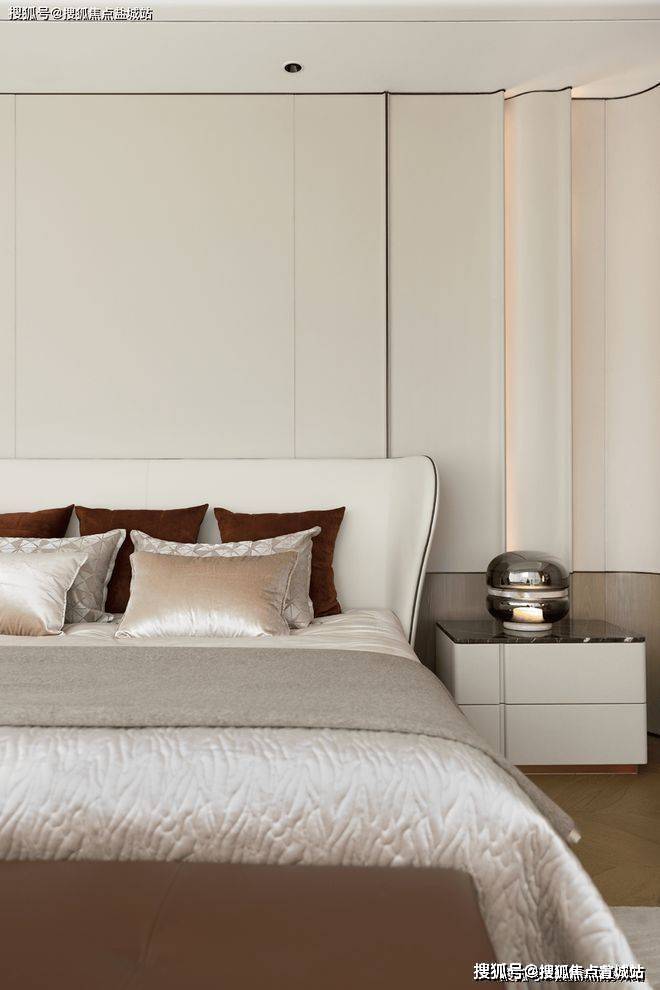 杭州凤咏朝阳售楼处电话☎:400-8828-814(售楼处预约看房热线)主卧来自Eda-Mame 的艺术躺椅,以弯曲和蜿蜒的线条为特征,宛如母亲的怀抱,温馨而舒适;个性创意的设计与高雅简约的色调自成意趣,彰显主人的艺术品味与生活情致。整体铺陈清雅而温润,纳入功能性与美学性相结合的设计理念,实用与美感平衡,疗养与情致并存,让长辈的生活更安稳舒心。