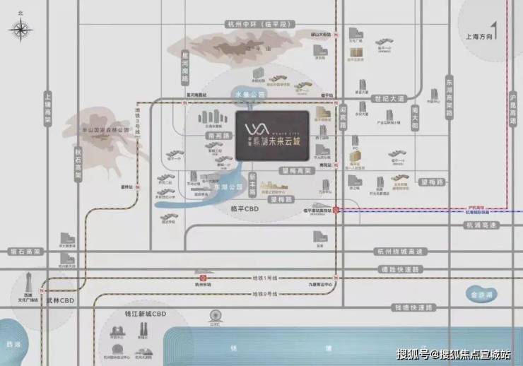交通:距地铁 9 号线临平站和南苑站均约 350 - 432 米,临近规划中的地铁 18 号线世纪大道站,直线距离约 800 米;距高铁临平南站约 3 公里,15 分钟可达杭州东站,30 分钟覆盖上海虹桥枢纽;周边还有沪杭高速高架路临平出入口,出行便捷。