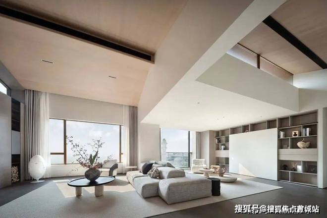 这个空间的设计很独特,既通透又有层次感。巧妙的错位设计,让每个空间都有自己的尺度感。
