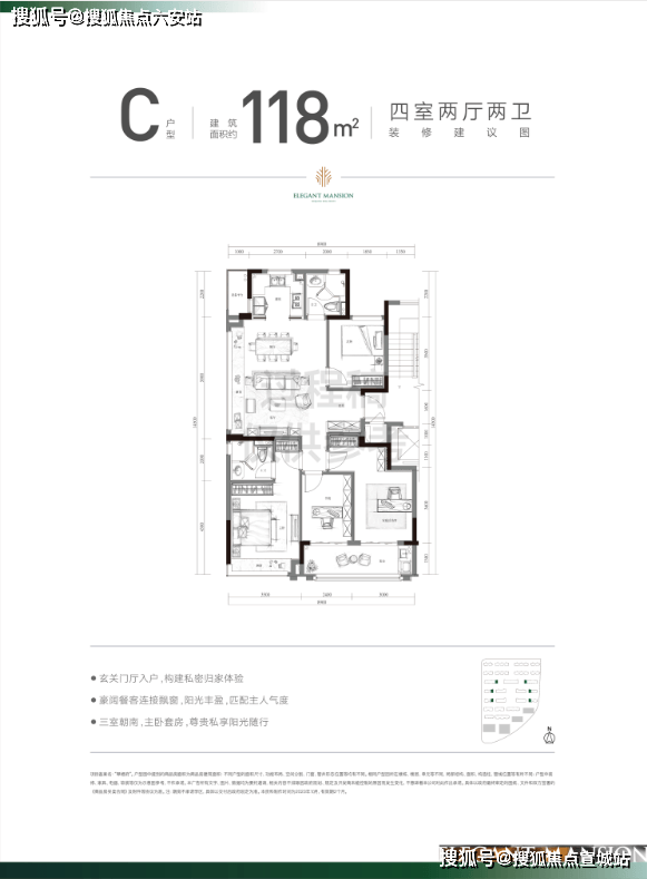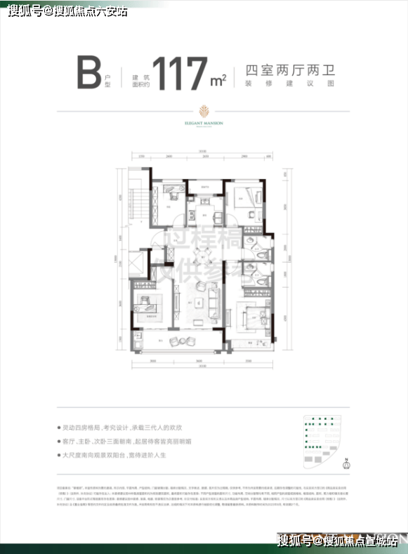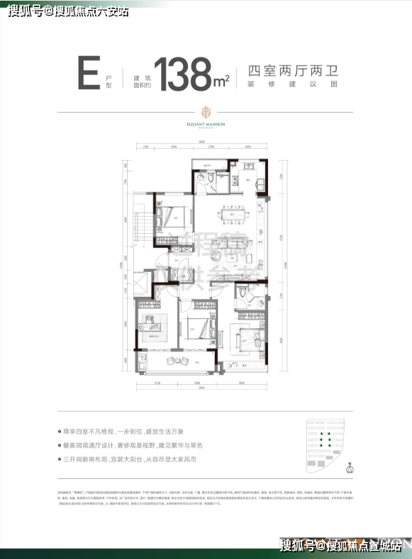 139㎡:四叶草格局,37㎡横厅衔接6.7米飘窗,南北通透。