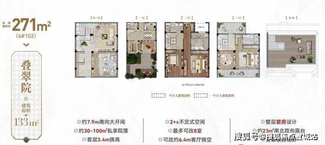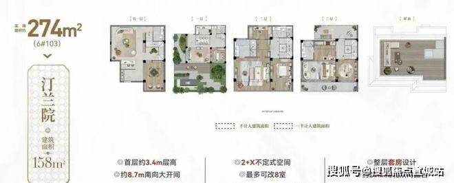 联排别墅:建筑面积 133-158㎡,首层挑空 3.4 米,总价 268 万起,得房率超 245%。