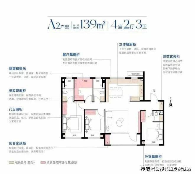 139㎡四房:客厅与书房间非承重墙可打开形成6米横厅,预留中西双厨空间