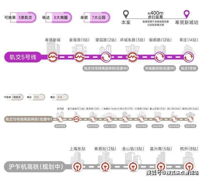 交通方面:项目多轨交环绕,5号线、15号线南延伸段(在建中)、市域嘉闵线南延伸段(规划中)、沪乍杭高铁(规划中)及南枫线(在建中)