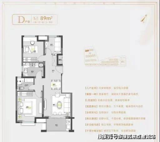 洋房:55㎡和56㎡1房1厅1卫、78㎡2房1厅1卫、89㎡3房2厅1卫