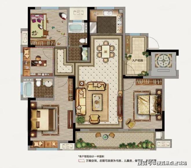 洋房户型128㎡大阳台4房2厅2卫