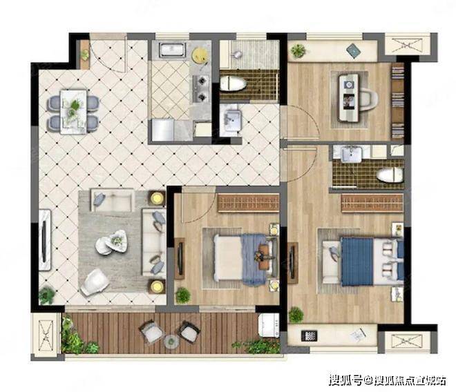 平层户型96㎡大阳台3房2厅2卫