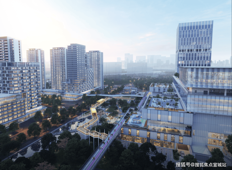 还有公共交通、人行天桥、邻里中心、街区邻里公园、循环型花园等。建筑地标、核心配套、可持续性的高科技,都在浦南未来社区项目当中体现。让人不禁联想到奥体亚运村和未科绿汀路TOD。