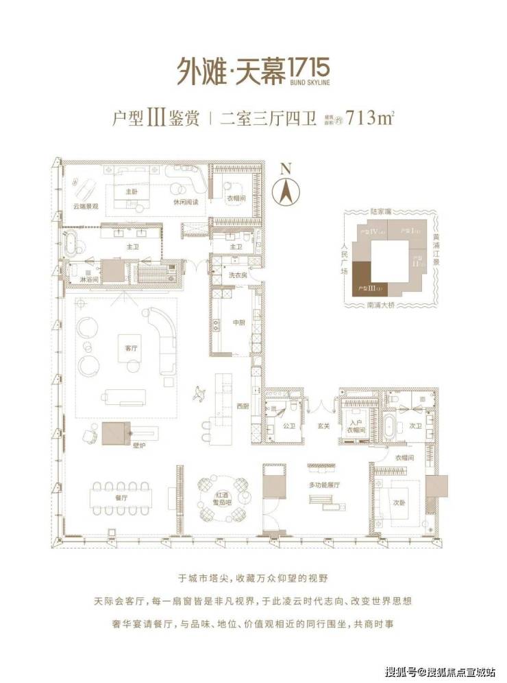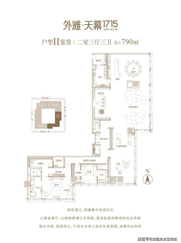 外滩金融 地标资产『外滩•天幕1715』 建面约713-799㎡总裁官邸,全球总裁 天幕行宫;震撼一线江景 大平层;300米高空 揽尽360° 江景视野;滨江恒产|天幕官邸|穹顶社交|栖心平台