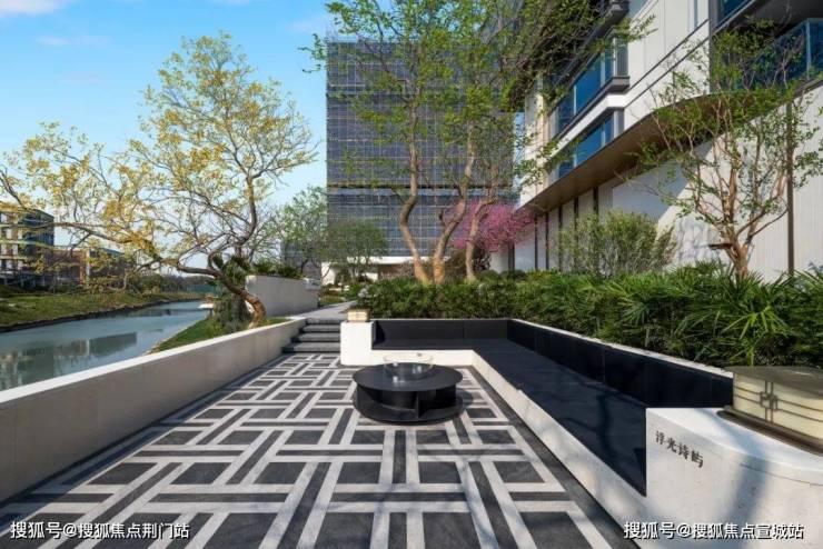 很多楼盘水池铺的都是瓷砖马赛克,但它却用上了意大利卡拉卡白大理石,将池水衬出梦幻的蒂芙尼蓝。池边摇曳着油橄榄树、造型紫薇,高级感丝毫不逊现在那几个网红豪宅。