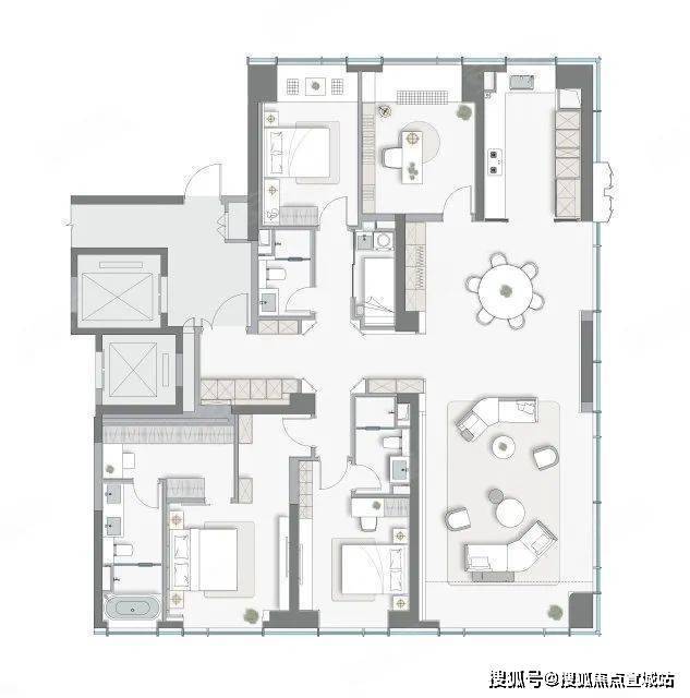 回归终改客户和资产配置客户的生活场景,项目在私密性和社交属性作出了重要表达,从细节着手革新产品设计标准,归家动线上打造出艺术地库光厅、一梯一户格局、隐奢会所、多场景架空层等人性化空间。