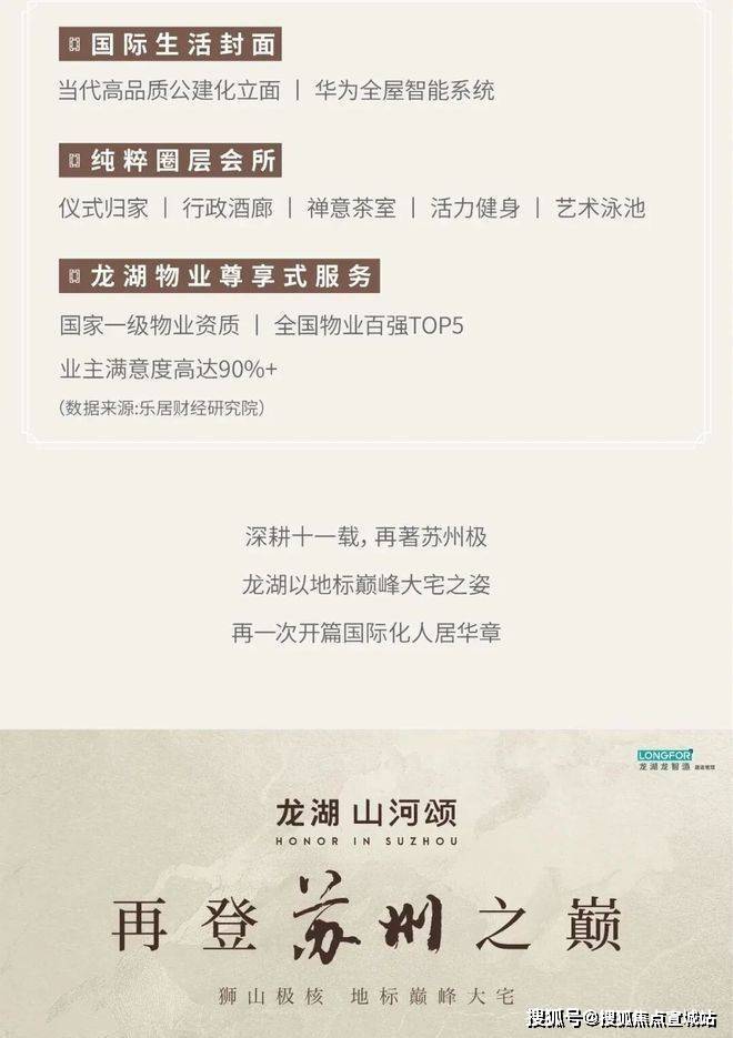 【项目核心价值点】狮山路核心CBD·最极致资源配套主城稀缺土地·终极置业地段运河文脉传承·绝版沿线住宅隐贵定制豪宅·极致稀缺平墅传奇综合地标·纵享国际生活国际巅峰大宅·纯粹公建立面豪宅龙湖品牌·深耕苏州11载国际一线臻装·隐奢细节雕琢亿级隐奢会所·康莱德行政酒廊钻石龙湖物业·康莱德增值服务✅龙湖·山河颂售楼处电话:400-8862-334✅︎✅︎✅✅龙湖·山河颂营销中心热线400-8862-334(官方预约看房热线)