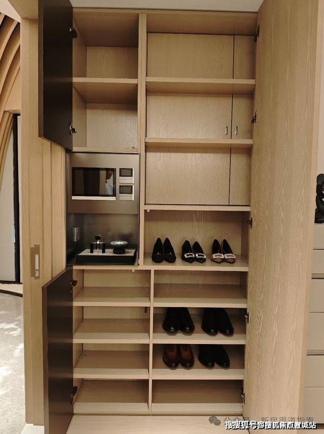 项目把不怎么常用的「弱电箱」藏在了玄关柜内。一方面,这完全没有浪费空间。另外一方面,可以保证客厅的空间视觉更完整,漂亮。
