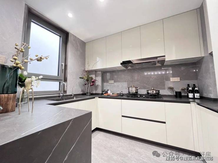 此外该户型有多达5处飘窗,很好延伸了室内空间。主卧是豪华套房,就寝区、衣帽间、卫浴间层层递进。厨房尺度非常舒适,L型操作台面配双开门冰箱位。