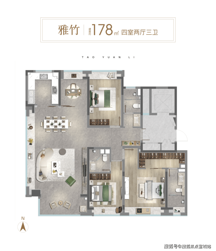 建面约178㎡四房户型▼