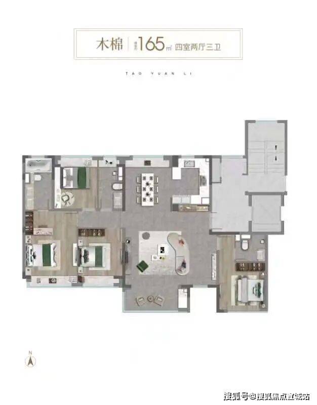建面约165㎡四房户型▼
