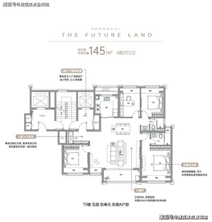 户型特点:99㎡三房实现南向面宽 10.8 米,三开间朝南;100㎡三房紧凑实用,南北通透,全明设计;128㎡三房为舒适改善型,主卧套房设计,客厅面宽开阔;145㎡四房宽敞舒适,四开间朝南,功能分区合理。
