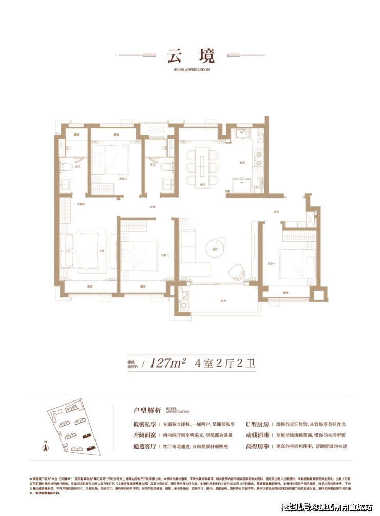 建面约127㎡4房2厅2卫▼