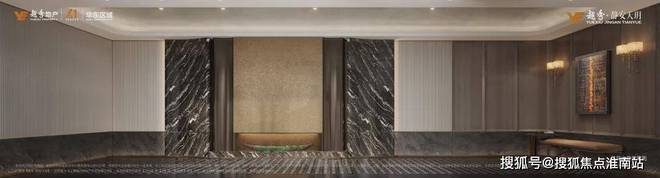 The ground floor lobby, Brazil imported stone Thames stone and light texture stone to form a visual collision, combined with gold liquid metal paint and dark wood finish, to create a low-key low-key tone, in addition to the ground lobby, Yuexiu Jingan Tianyue basement is also amazing, the unit drop-off area to create a bright light hall, so that owners driving home can also feel the warm welcome.