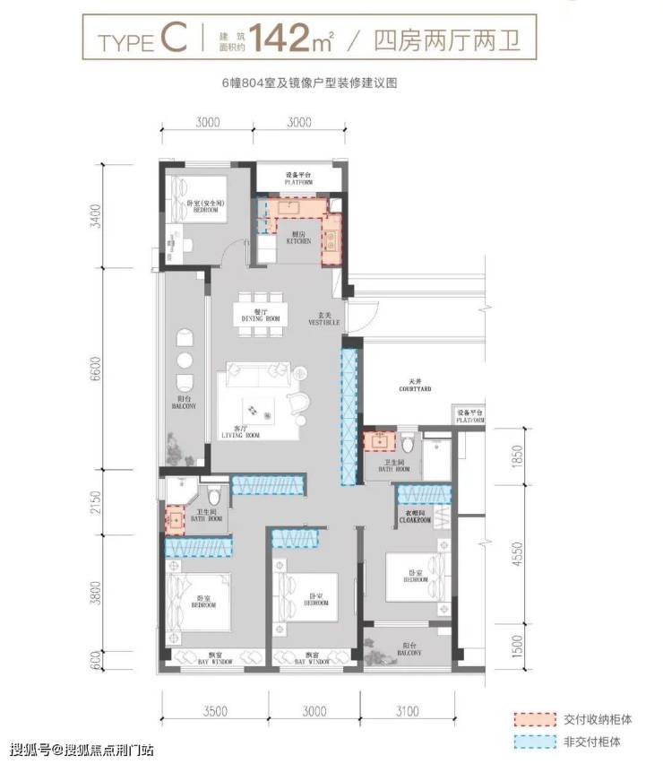 建面约142㎡改善大四房,采用大尺度边厅设计,进一步放大了阳光平权的优势;270°环景视野,提升居家无界的生活质感;南向三卧室+约6.6米边厅观景大阳台,与客餐厅无缝对接,让家人在餐饮娱乐之余,观赏窗外美景,尽揽四季风景.