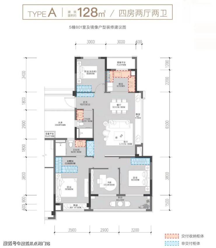 建面约128方户型图示意