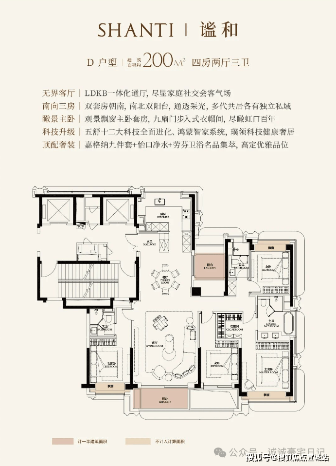 金茂·璞元从“温度、湿度、空气、阳光、水、声音”六大基本生命元素延伸12大科技体系,实现“舒温、舒湿、舒氧、舒净、舒音”的居住环境。