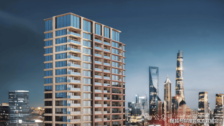 建筑四面均采用铝板+玻璃+定制陶艺,历经百次试烧锻造鎏金陶板,成就上海唯一国际东方艺术全景立面,每面皆城市封面,整体采用非对称的结构设计,回应上海东西方文化交融碰撞的城市美学。大胆采用四排楼布局,以保证户户通风采光,类一梯一户无连廊设计,将入户私密性做到极致。