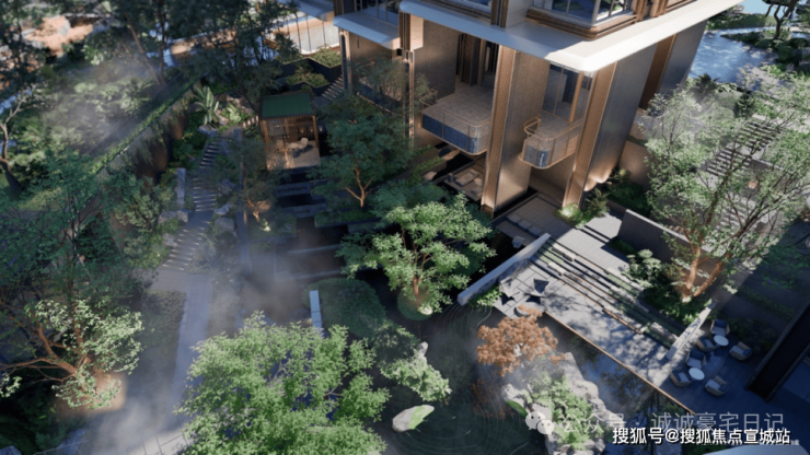金茂领先的产品力,定义上海豪宅的全新范式。社区整体抬高1.3-1.4米,形成“玉盘托珠”格局,从城市道路步入社区,需要拾级而上,成就上海首个悠谷式归家谧境;另外,社区的抬高在营造私密感的同时,也把河道景观引入社区,形成隐私屏障与观景露台。