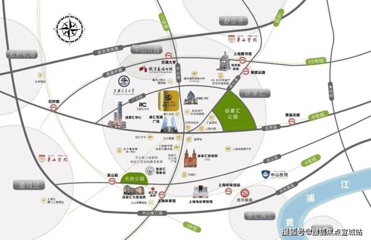 地铁:亚洲最大最先进的徐家汇地铁站上盖,与 1/9/11 号线地铁零距离;10/11 号线交通大学站距离项目 400 米,1.5km 内有 8 个地铁站 7 条地铁线,规划中还有 23/25 号两条地铁。