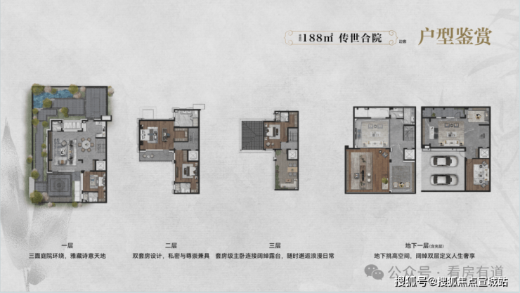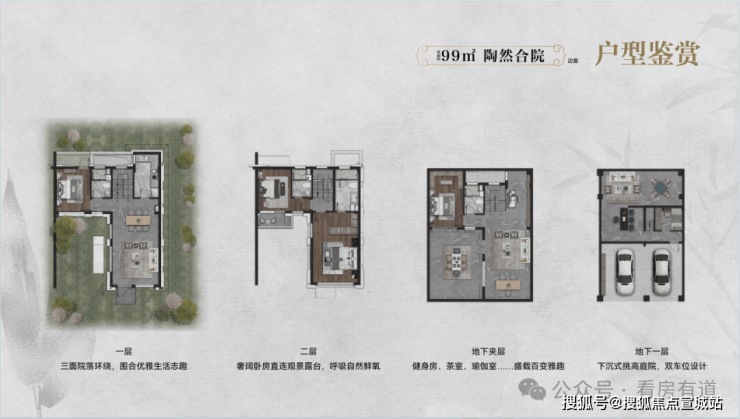 约99㎡合院产品做到了地上2层,地下室挑高5.5米。