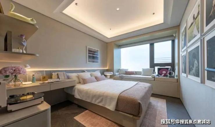 2#号楼的边套主卧户型配置270°环幕飘窗,不仅延伸空间尺度,更将水岸、园景“框”成私藏壁画。晨间,阳光透过飘窗铺满床榻;深夜,枕着河风与月光入眠,这是专属建面约165㎡的“观景特权”