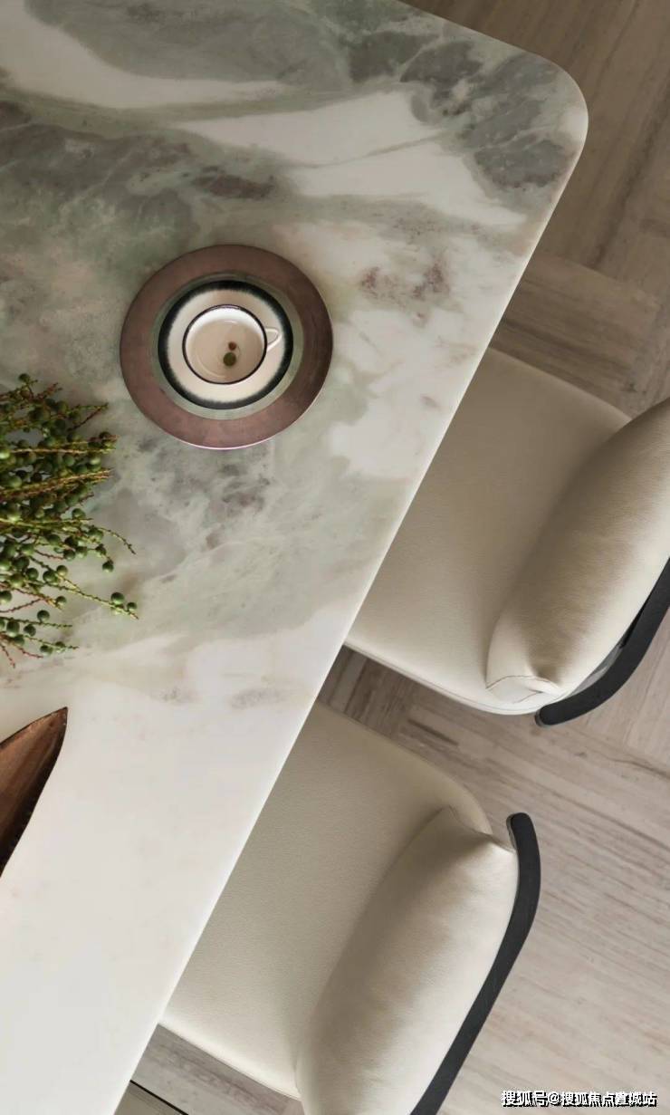 灰白色的整体调性,营造出安静惬意的居家感受。客厅采用爱马仕灰大理石,细腻的石材纹理质感,层层递进,开启视觉延展。